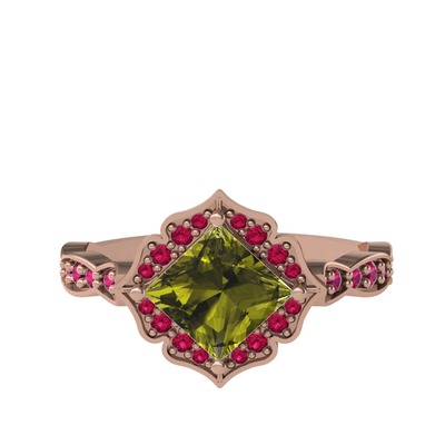 Peridot ve rodolit garnet 14 ayar rose altın yüzük