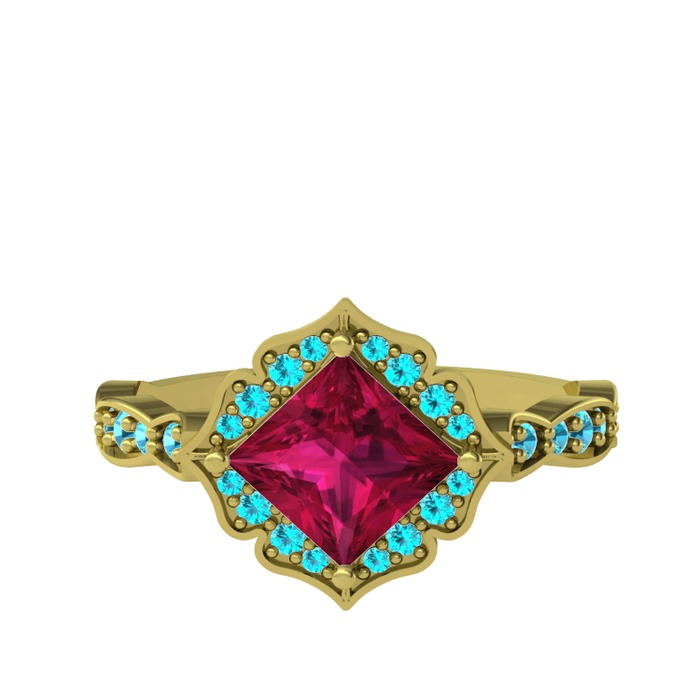 Rodolit garnet ve akuamarin 14 ayar altın yüzük