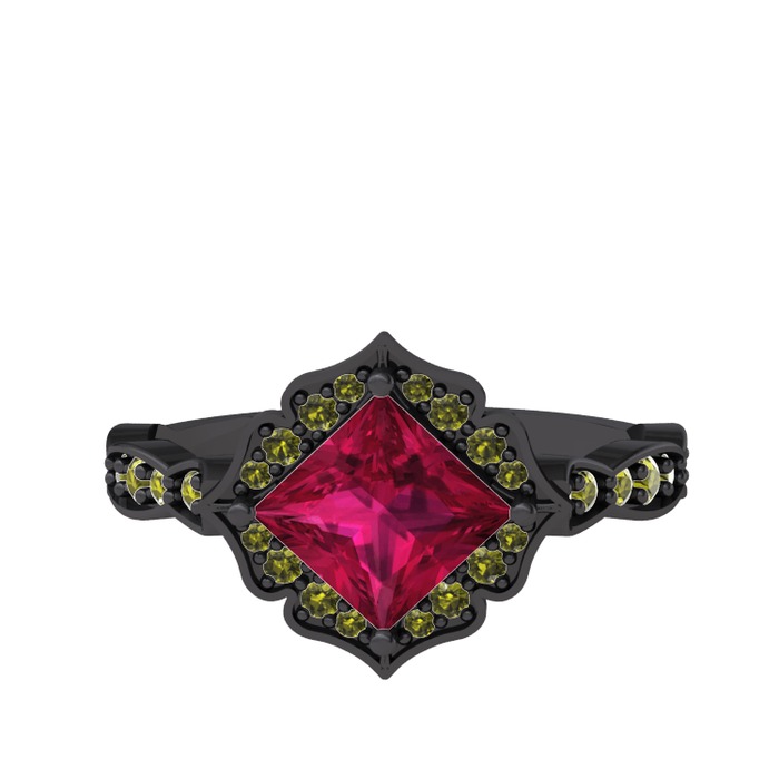 Rodolit garnet ve peridot 925 ayar siyah rodyum kaplama gümüş yüzük