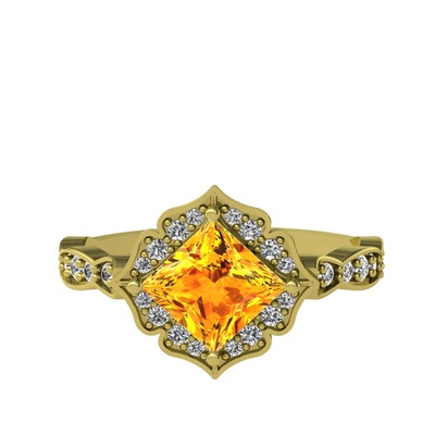 Sitrin ve beyaz zirkon 18 ayar altın yüzük