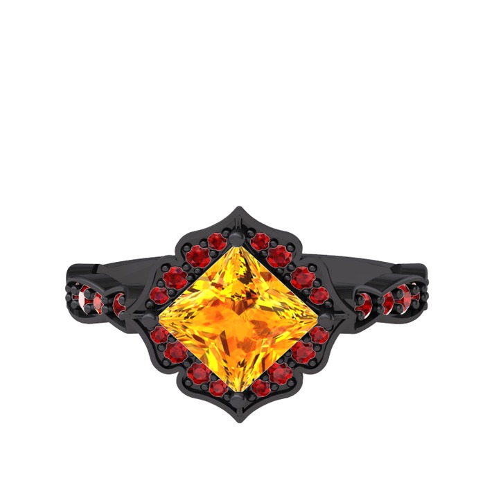 Sitrin ve garnet 925 ayar siyah rodyum kaplama gümüş yüzük