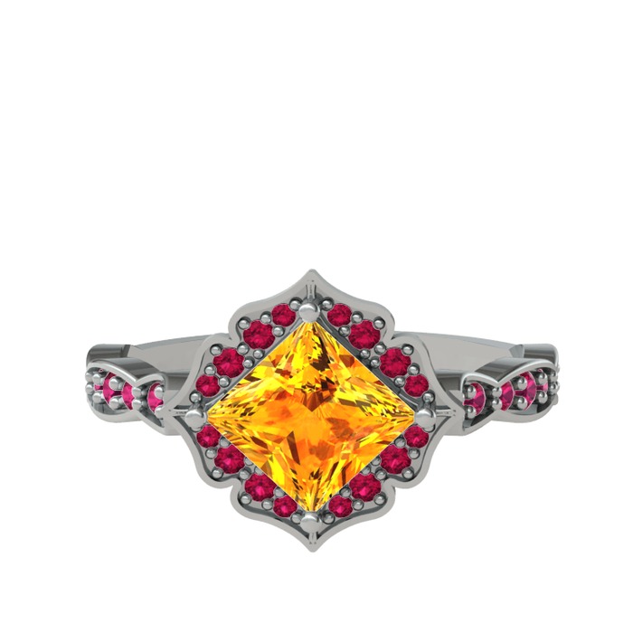 Sitrin ve rodolit garnet 18 ayar beyaz altın yüzük