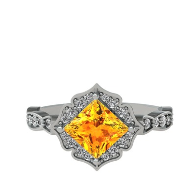 Sitrin ve swarovski 14 ayar beyaz altın yüzük