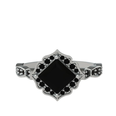 Siyah zirkon 8 ayar beyaz altın yüzük