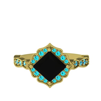 Siyah zirkon ve akuamarin 8 ayar altın yüzük