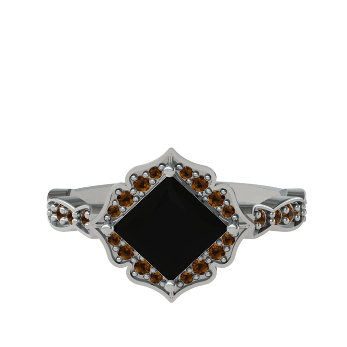 Siyah zirkon ve dumanlı kuvars 18 ayar beyaz altın yüzük