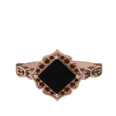 Siyah zirkon ve dumanlı kuvars 18 ayar rose altın yüzük
