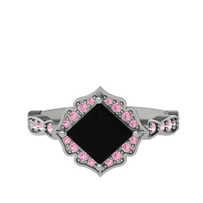Siyah zirkon ve pembe kuvars 8 ayar beyaz altın yüzük