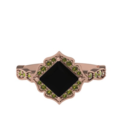 Siyah zirkon ve peridot 8 ayar rose altın yüzük