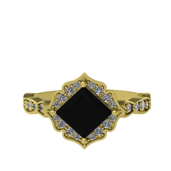 Siyah zirkon ve pırlanta 14 ayar altın yüzük (0.775 karat)