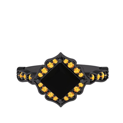 Siyah zirkon ve sitrin 925 ayar siyah rodyum kaplama gümüş yüzük