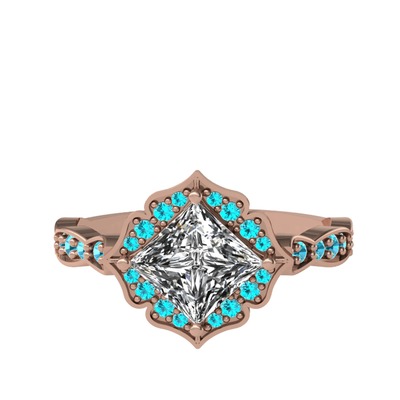 Swarovski ve akuamarin 18 ayar rose altın yüzük