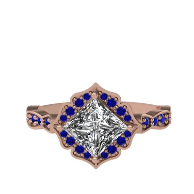 Swarovski ve lab safir 18 ayar rose altın yüzük