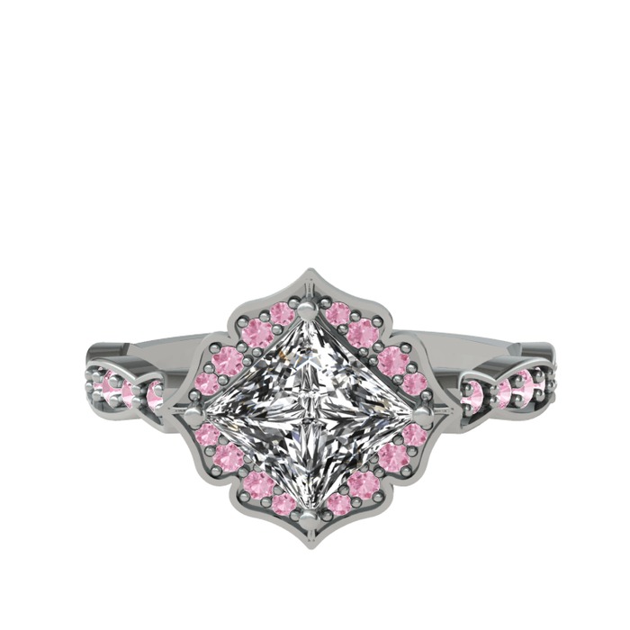 Swarovski ve pembe kuvars 14 ayar beyaz altın yüzük