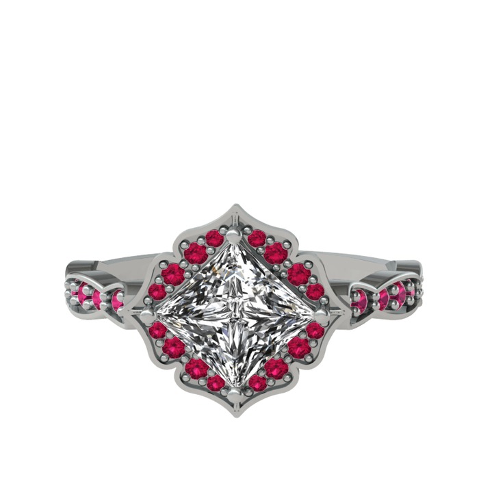Swarovski ve rodolit garnet 8 ayar beyaz altın yüzük