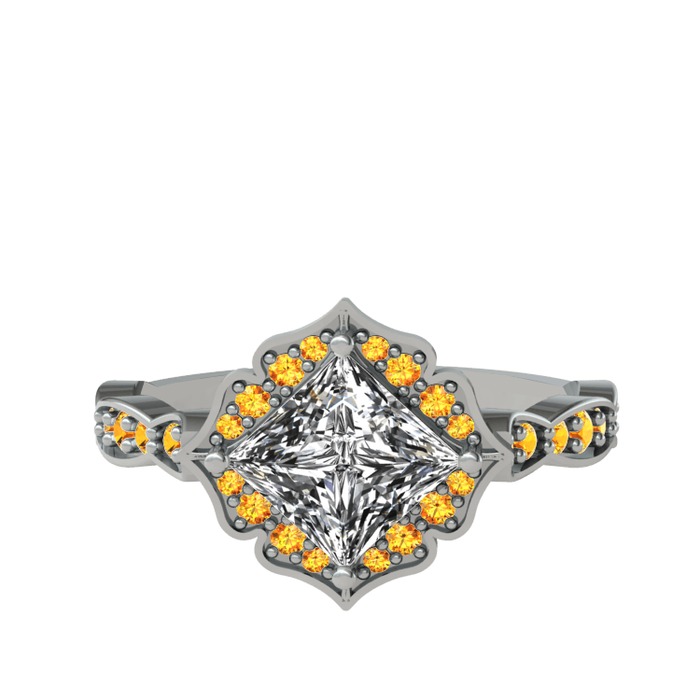 Swarovski ve sitrin 14 ayar beyaz altın yüzük