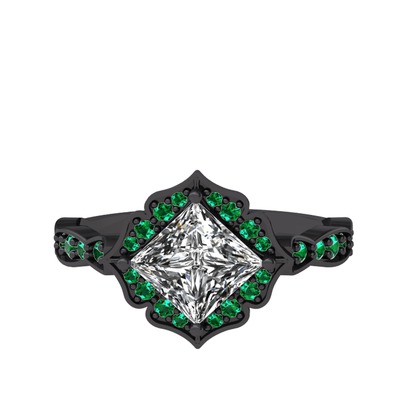 Swarovski ve yeşil kuvars 925 ayar siyah rodyum kaplama gümüş yüzük
