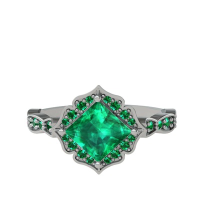 Yeşil kuvars 14 ayar beyaz altın yüzük
