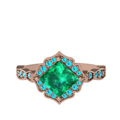 Yeşil kuvars ve akuamarin 8 ayar rose altın yüzük
