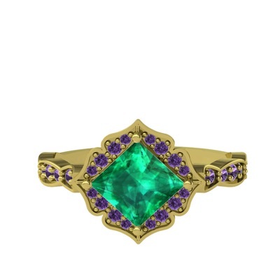 Yeşil kuvars ve ametist 8 ayar altın yüzük