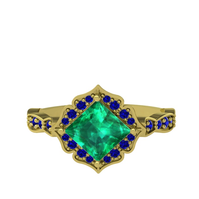 Yeşil kuvars ve lab safir 14 ayar altın yüzük