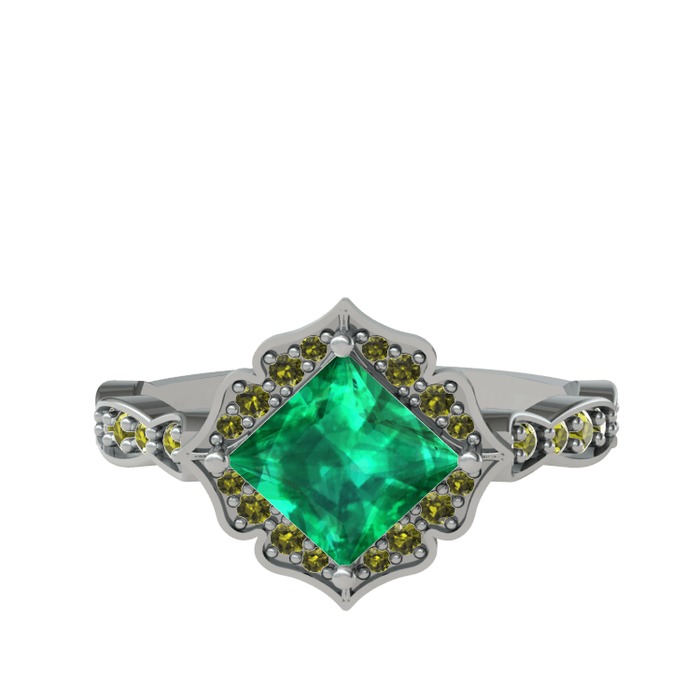 Yeşil kuvars ve peridot 8 ayar beyaz altın yüzük