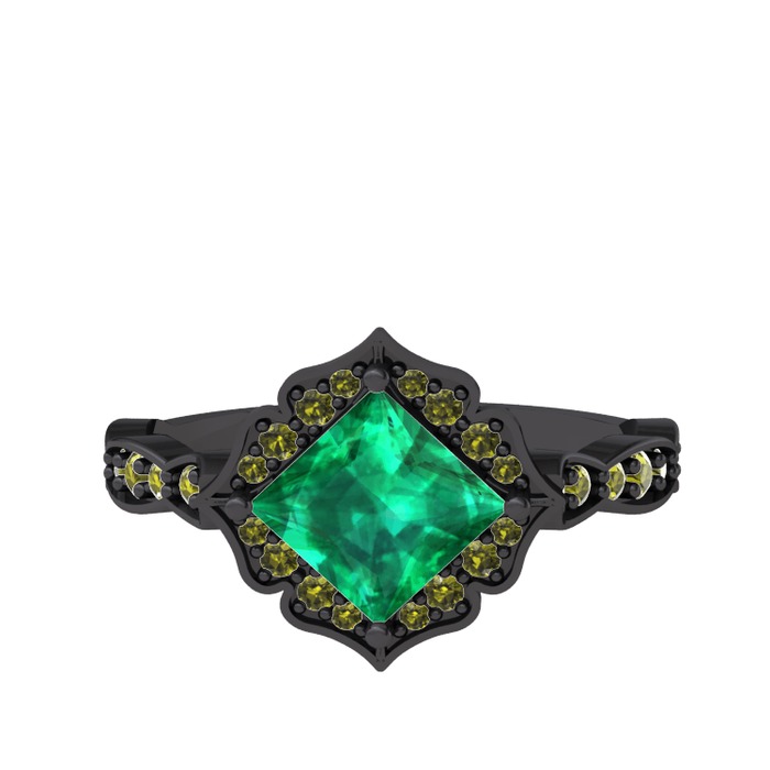 Yeşil kuvars ve peridot 925 ayar siyah rodyum kaplama gümüş yüzük