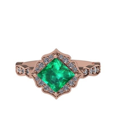 Yeşil kuvars ve pırlanta 14 ayar rose altın yüzük (0.775 karat)