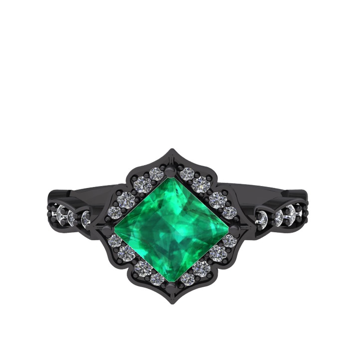 Yeşil kuvars ve pırlanta 925 ayar siyah rodyum kaplama gümüş yüzük (0.775 karat)