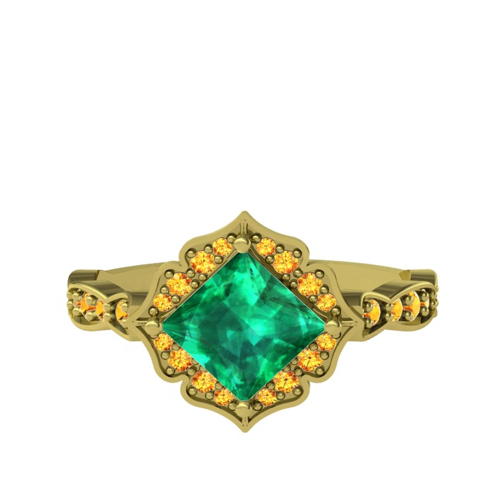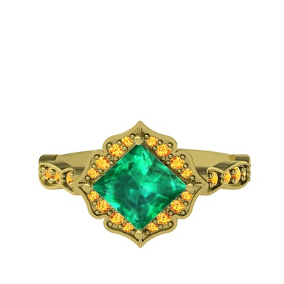 Yeşil kuvars ve sitrin 925 ayar altın kaplama gümüş yüzük