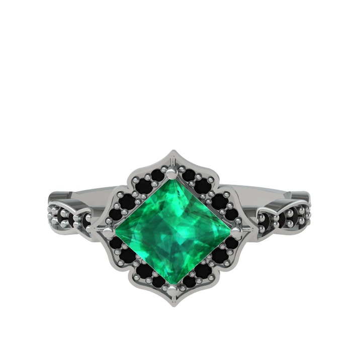 Yeşil kuvars ve siyah zirkon 8 ayar beyaz altın yüzük