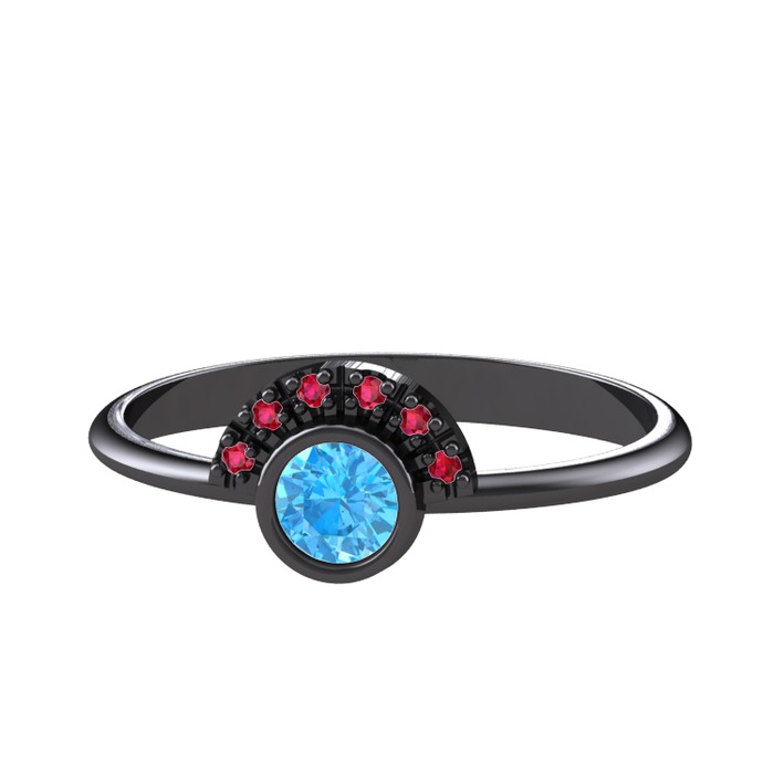 Akuamarin ve rodolit garnet 925 ayar siyah rodyum kaplama gümüş yüzük