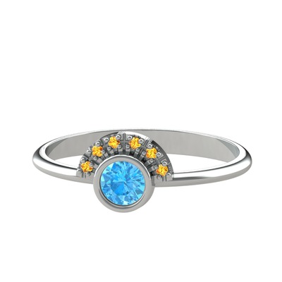 Akuamarin ve sitrin 925 ayar gümüş yüzük