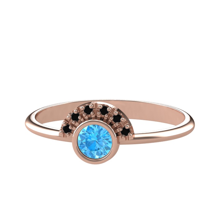 Akuamarin ve siyah zirkon 14 ayar rose altın yüzük