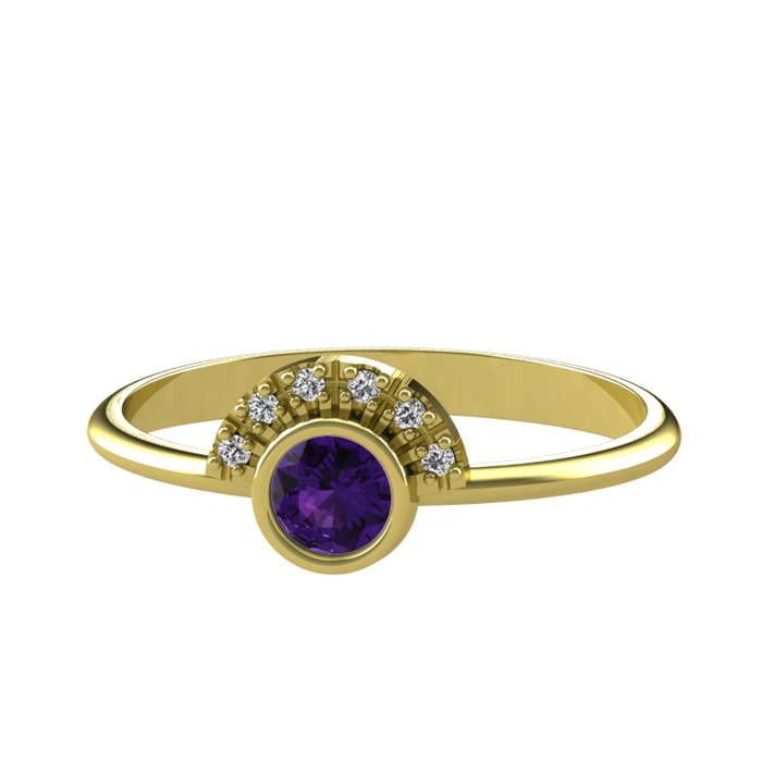 Ametist ve beyaz zirkon 8 ayar altın yüzük