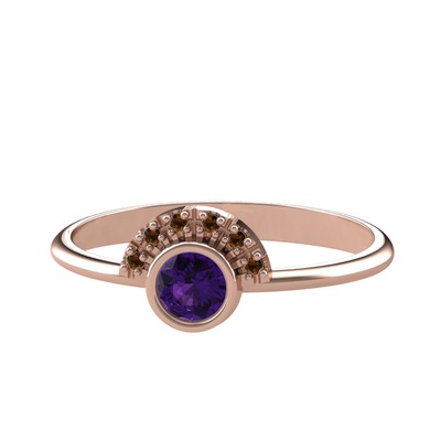 Ametist ve dumanlı kuvars 14 ayar rose altın yüzük