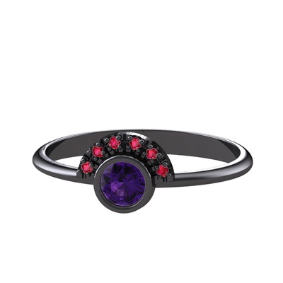 Ametist ve rodolit garnet 925 ayar siyah rodyum kaplama gümüş yüzük