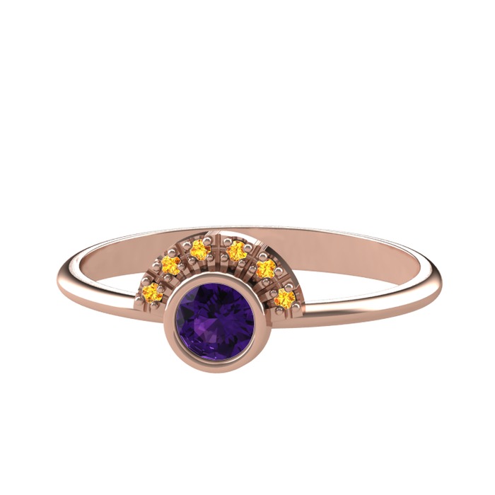 Ametist ve sitrin 14 ayar rose altın yüzük