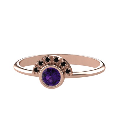 Ametist ve siyah zirkon 18 ayar rose altın yüzük