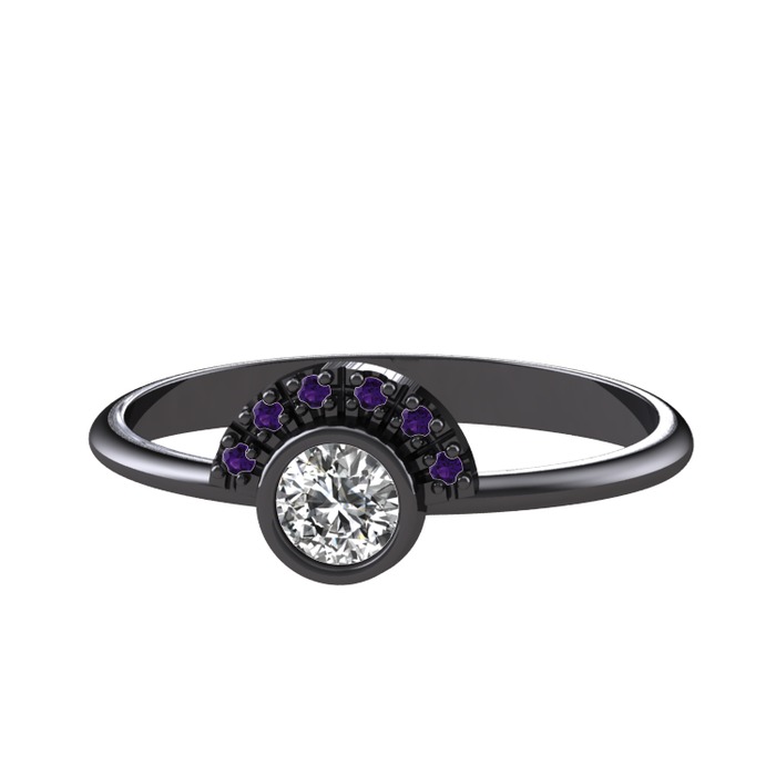 Beyaz zirkon ve ametist 925 ayar siyah rodyum kaplama gümüş yüzük