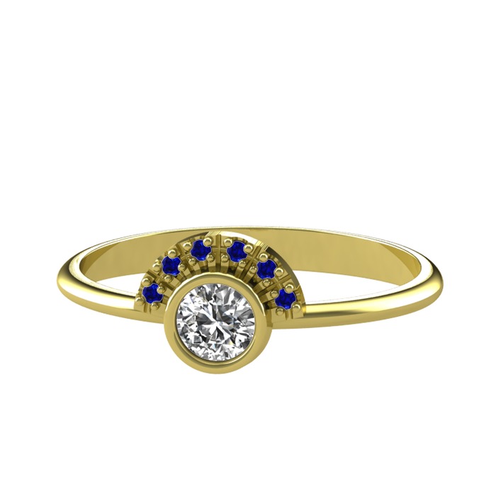 Beyaz zirkon ve lab safir 925 ayar altın kaplama gümüş yüzük