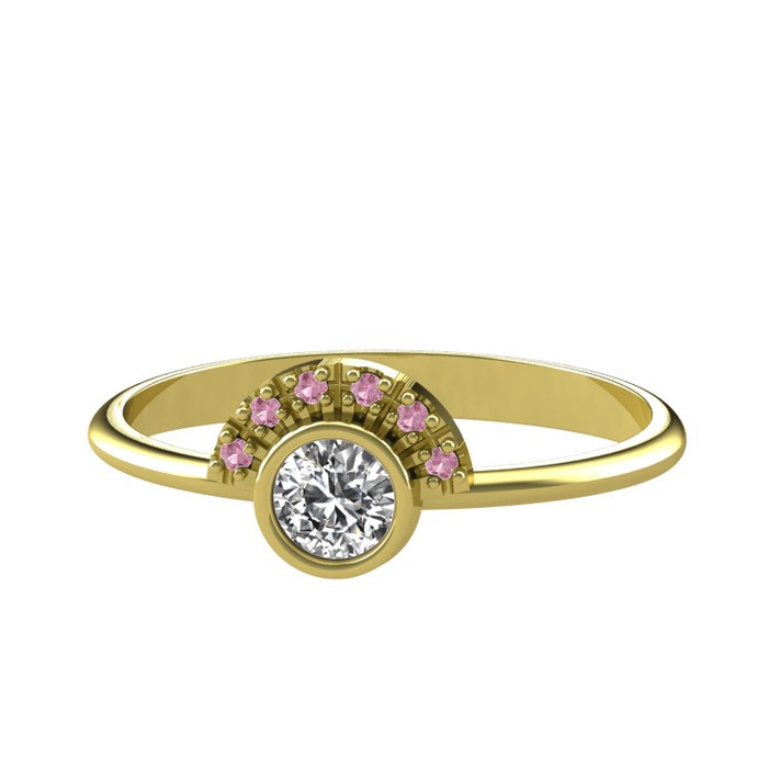 Beyaz zirkon ve pembe kuvars 14 ayar altın yüzük