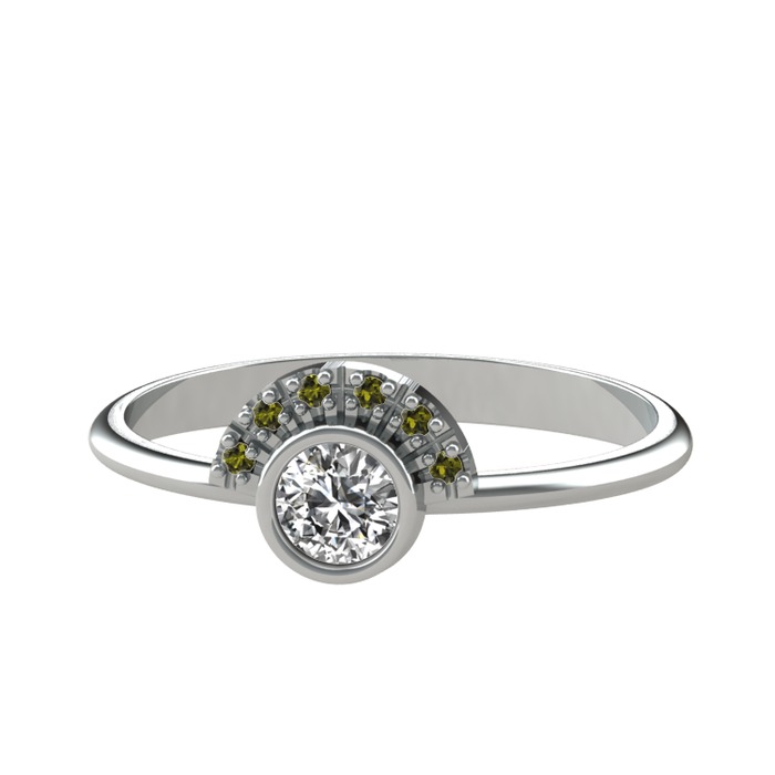 Beyaz zirkon ve peridot 8 ayar beyaz altın yüzük