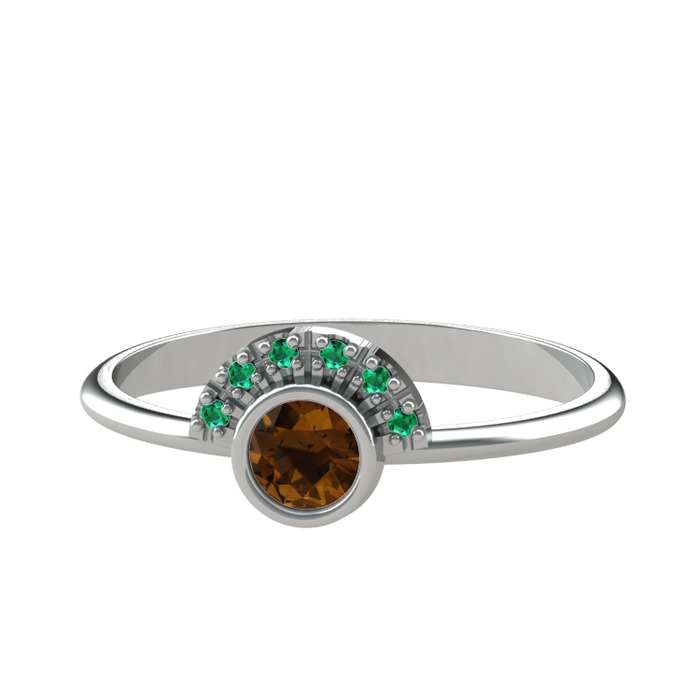 Dumanlı kuvars ve yeşil kuvars 8 ayar beyaz altın yüzük