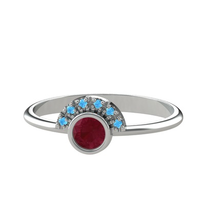 Kök yakut ve akuamarin 18 ayar beyaz altın yüzük
