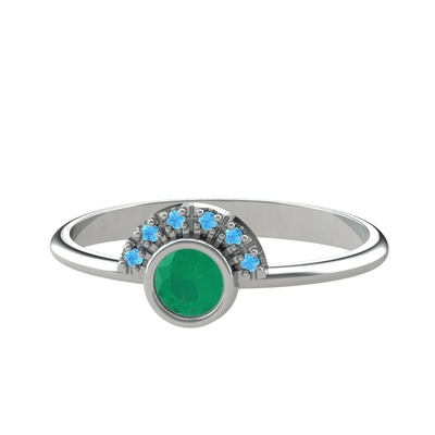 Kök zümrüt ve akuamarin 8 ayar beyaz altın yüzük