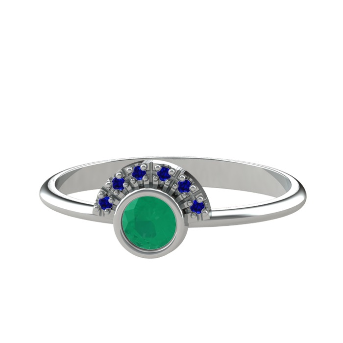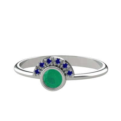Kök zümrüt ve lab safir 14 ayar beyaz altın yüzük
