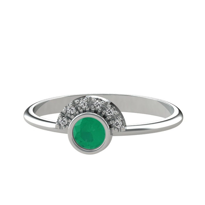 Kök zümrüt ve swarovski 18 ayar beyaz altın yüzük