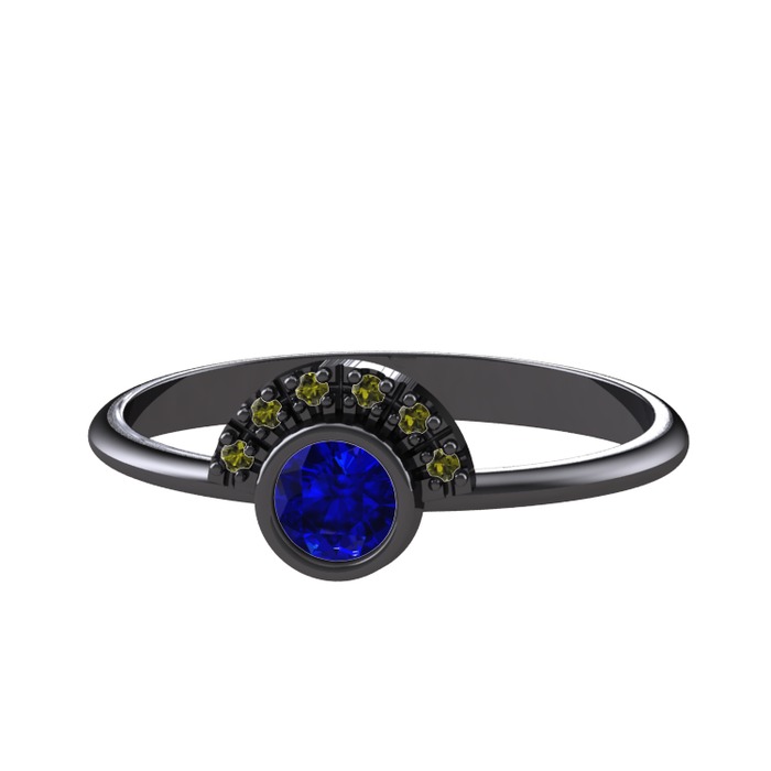 Lab safir ve peridot 925 ayar siyah rodyum kaplama gümüş yüzük
