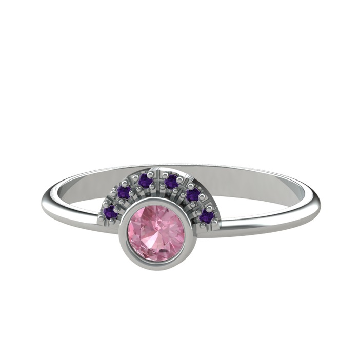 Pembe kuvars ve ametist 18 ayar beyaz altın yüzük